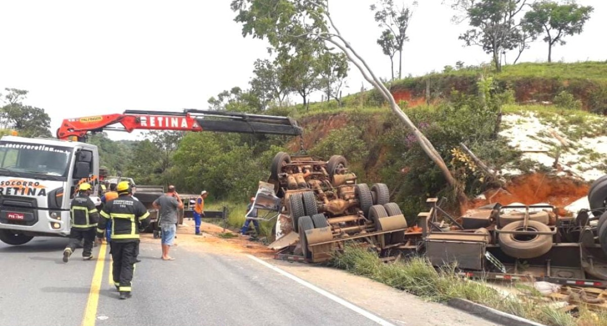Com informações do Corpo de Bombeiros, o caminhão-trator M.Benz, que tracionava o semi-reboque pela rodovia BR-354 sentido Campo Belo/MG a Formiga/MG, quando na altura do km 506, local em declive e em curva deparou com uma ciclista a margem da rodovia, e para não atingi-la, perdeu o controle direcional da composição veicular, caindo em uma valeta de escoamento de água pluvial saindo da pista de rolamento, tombando, ficando com o teto no solo.