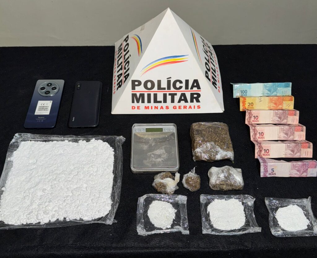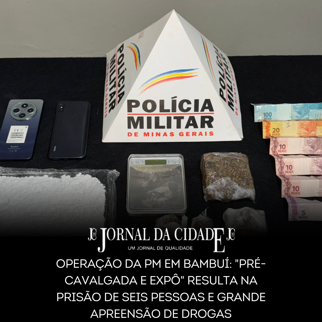 Ação estratégica da PMMG resultou no cumprimento de mandados e na apreensão de cocaína, maconha, crack, dinheiro e balança de precisão, visando a segurança dos eventos e da comunidade bambuiense.