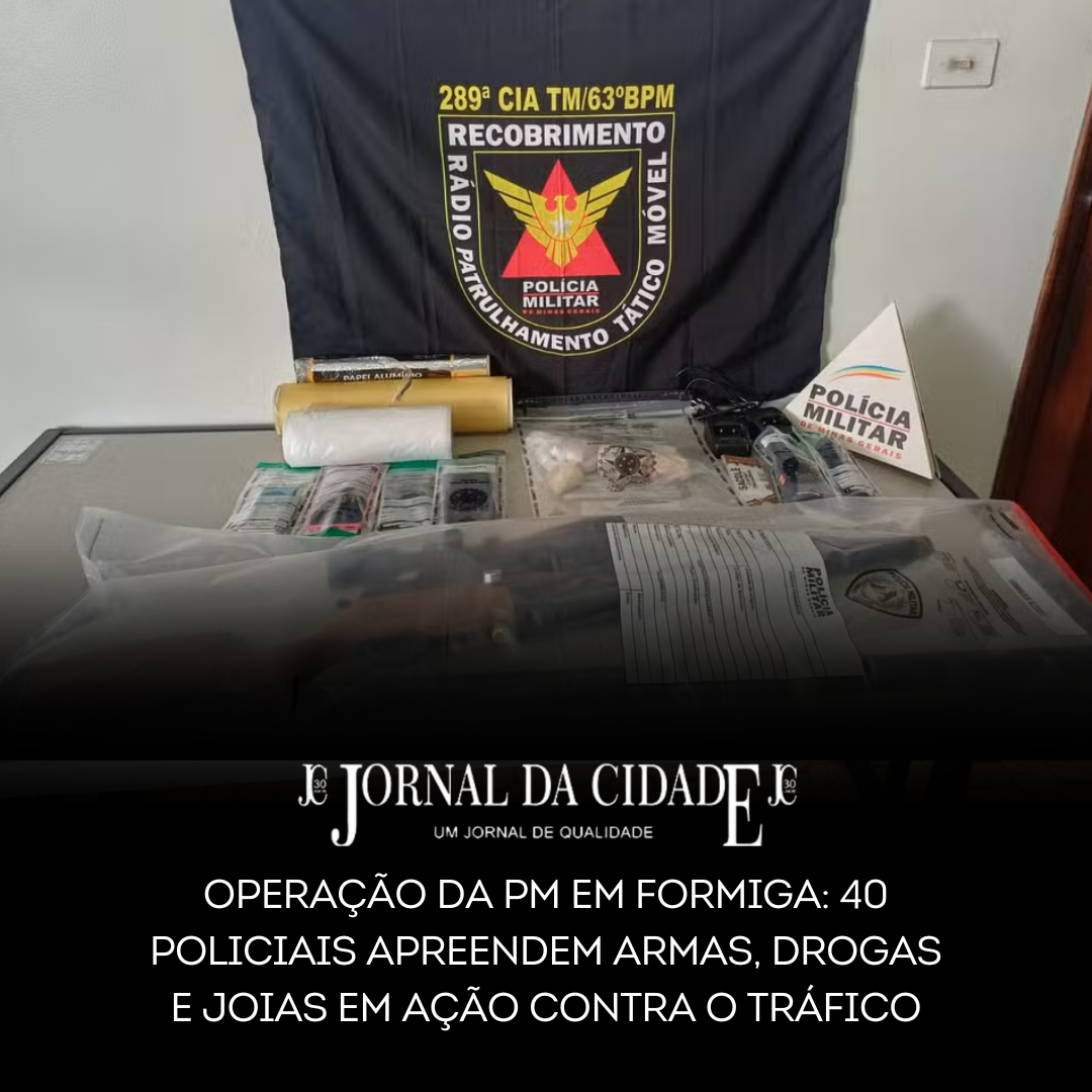 Formiga, MG — A Polícia Militar realizou uma grande operação de combate ao tráfico de drogas e à posse ilegal de armas na manhã desta quinta-feira (21) em Formiga. A ação, que contou com o empenho de 40 policiais em 14 viaturas, cumpriu mandados de busca e apreensão em diversos endereços, tanto na zona rural quanto na área urbana da cidade.