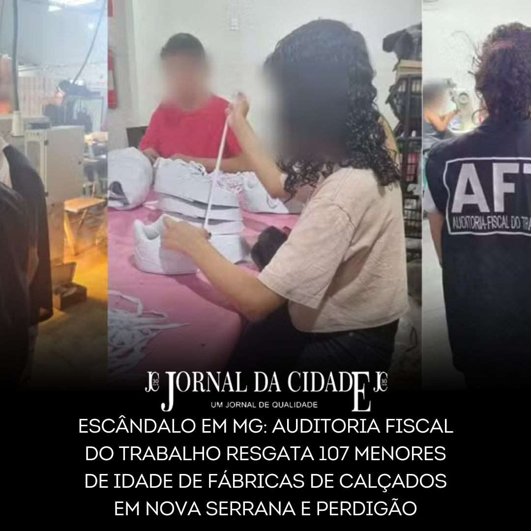 Nova Serrana, MG — A Auditoria Fiscal do Trabalho (AFT) resgatou 107 menores de idade de fábricas de calçados nas cidades de Nova Serrana e Perdigão, no Centro-Oeste de Minas, em uma operação realizada entre 22 e 26 de setembro. Os fiscais flagraram a exploração de uma criança e 106 adolescentes em 65 fábricas de calçados das duas cidades.