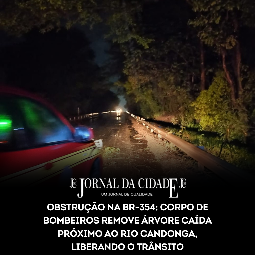 Arcos, MG — Na noite desta terça-feira (09/12), o Corpo de Bombeiros Militar de Minas Gerais, por meio do Posto Avançado de Arcos, atendeu a uma ocorrência de queda de árvore sobre a BR-354, na altura do km 468, próximo à ponte do rio Candonga (entre Arcos e Iguatama).