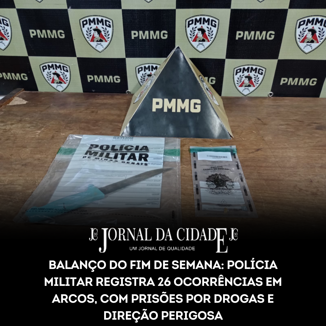 Arcos, MG — O final de semana em Arcos foi marcado por uma presença ativa da 241ª Companhia de Polícia Militar, que registrou um total de 26 ocorrências entre a última sexta-feira (13/03) e a manhã desta segunda (16/03). As ações dos militares focaram no combate ao tráfico local, repressão a crimes contra o patrimônio e, principalmente, na fiscalização de abusos no trânsito urbano e industrial.