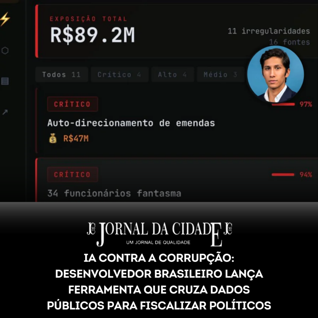 Ferramenta analisa CPFs de agentes públicos e conexões societárias para apontar padrões de enriquecimento incompatível e conflitos de interesse. Tecnologia