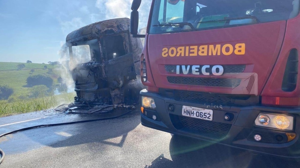 Uma carreta carregada com cimento pegou fogo na manhã desta sexta-feira (05) na BR-262, no município de Luz. A ocorrência