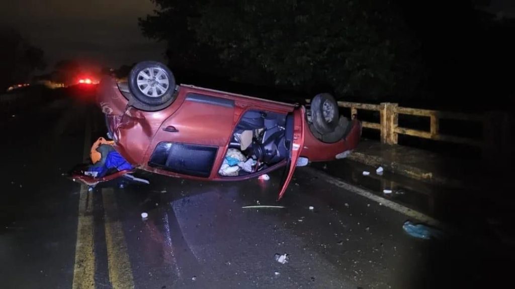 Escrito por Ana Carolina Ávila Um carro capotou na noite desta quarta-feira (07) na MG-170, na ponte do Rio Jacaré,