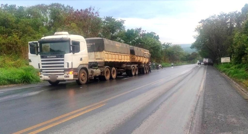 Um acidente de trânsito envolvendo uma carreta, um caminhão e uma motocicleta foi registrado por volta das 17h30 da última