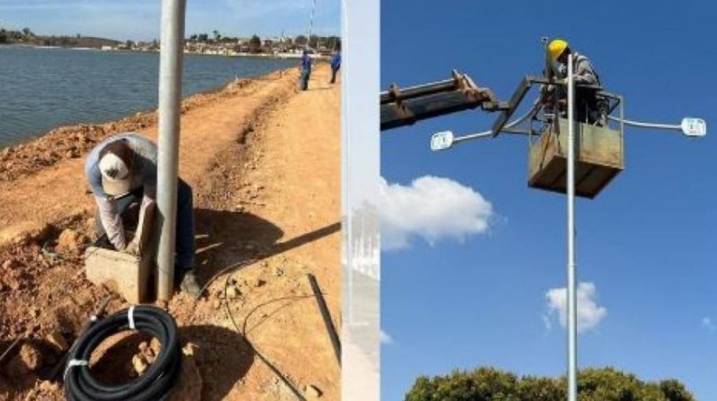 Instalação da iluminação da orla da lagoa é concluída em Pimenta