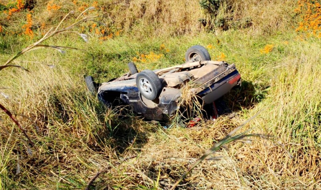 Dois irmãos, de 12 e 17 anos, ficaram feridos por volta das 13h desta segunda-feira (11) após um carro capotar