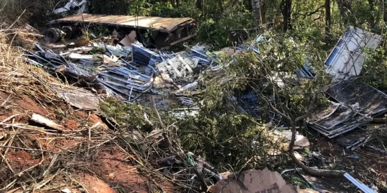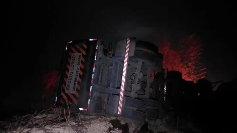 Uma carga de placas solares ficou espalhada após a carreta que transportava o material sofrer um acidente na BR-494, em