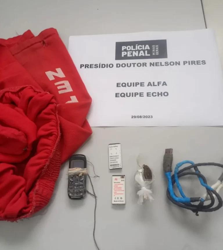 Um celular, duas baterias e um cabo USB foram encontrados escondidos na borda de um vaso sanitário em uma cela