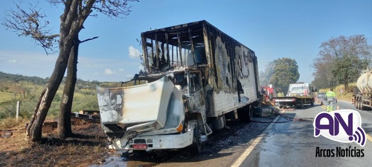 Um caminhão carregado pegou fogo na MG 050, em Divinópolis. De acordo com informações uma equipe do Corpo de Bombeiros