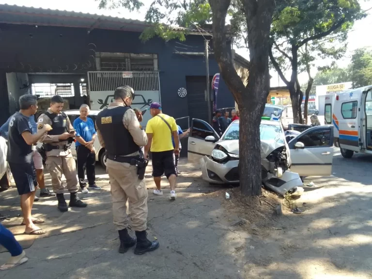 Uma motorista de 32 anos ficou ferida depois de bater com o carro em uma árvore no Bairro Porto Velho,