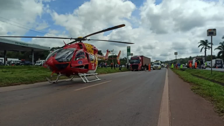 Um acidente entre uma carreta e uma motocicleta deixou duas pessoas mortas na BR-040, km 523, no bairro Guanabara, em