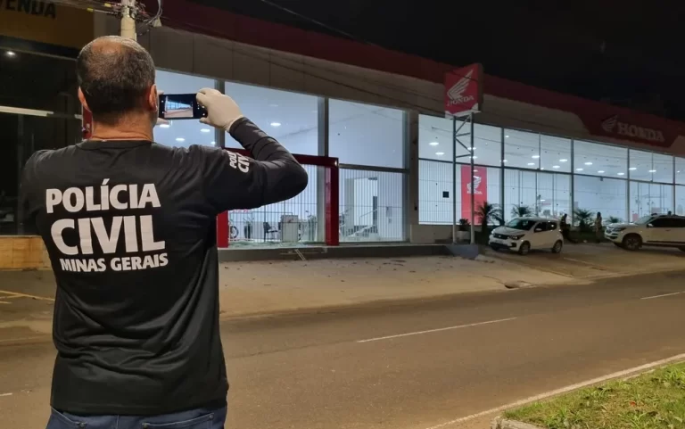 Criminosos tentaram assaltar e atearam fogo em uma concessionária de motos na madrugada deste domingo (2) em Passos (MG). Esta