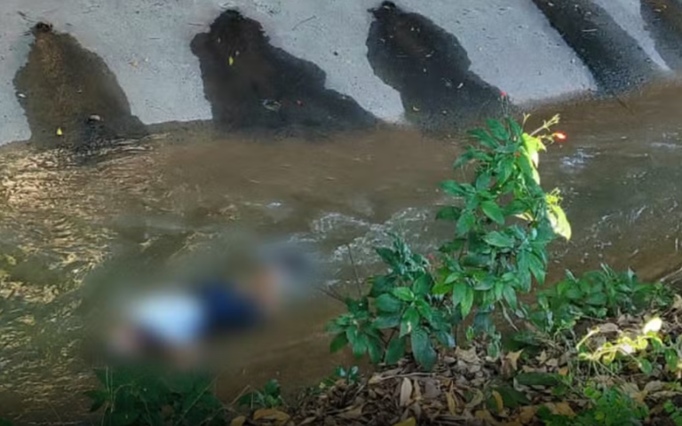 O corpo de um homem de aproximadamente 65 anos, ainda não identificado, foi encontrado caído em um córrego da Rua