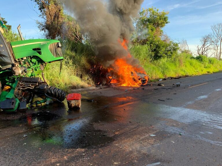 Um acidente envolvendo um trator e um carro de passeio foi registrado na manhã deste sábado (10), na rodovia MG-176