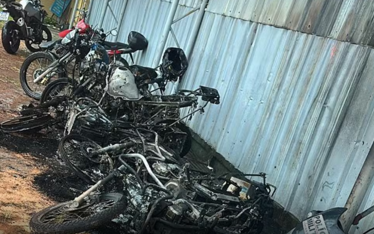 Seis motos da Polícia Militar ficaram danificadas após um incêndio. A Polícia Civil deve investigar se o incêndio foi criminoso.