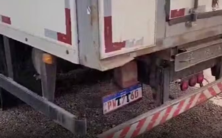 Um motorista de 38 anos foi detido após ser flagrado dirigindo um caminhão que estava com placas adulteradas com fitas