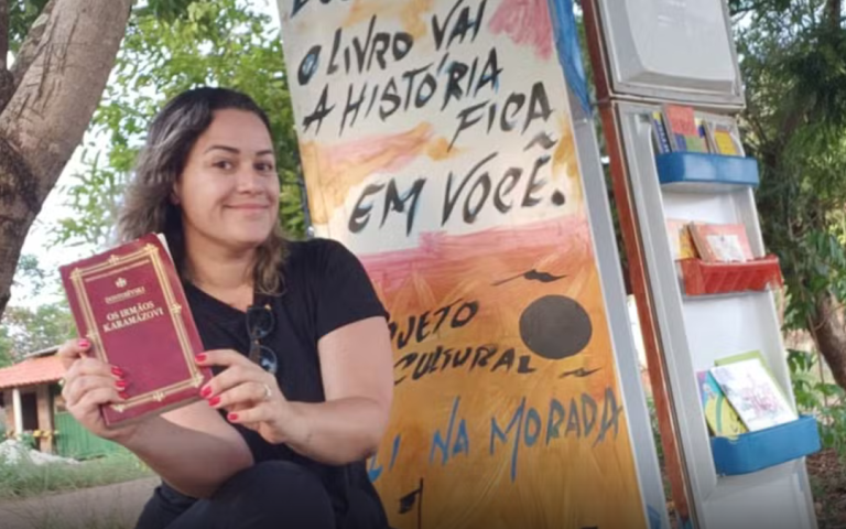 Geladeiras e fogões que estavam sem uso ganharam uma nova utilidade e foram transformados em bibliotecas que chamam a atenção