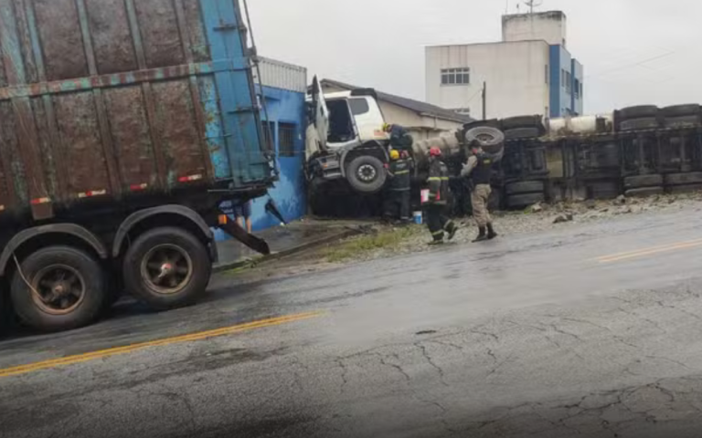 Uma carreta destruiu um muro e atingiu uma empresa na manhã desta quinta-feira (4), em Divinópolis. Uma câmera de segurança