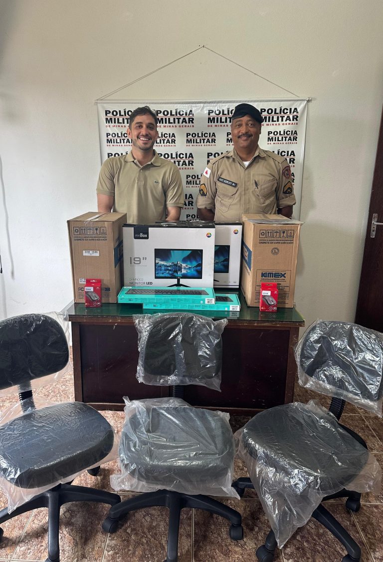 Prefeitura de Iguatama faz repasse de computadores e cadeiras para PMMG